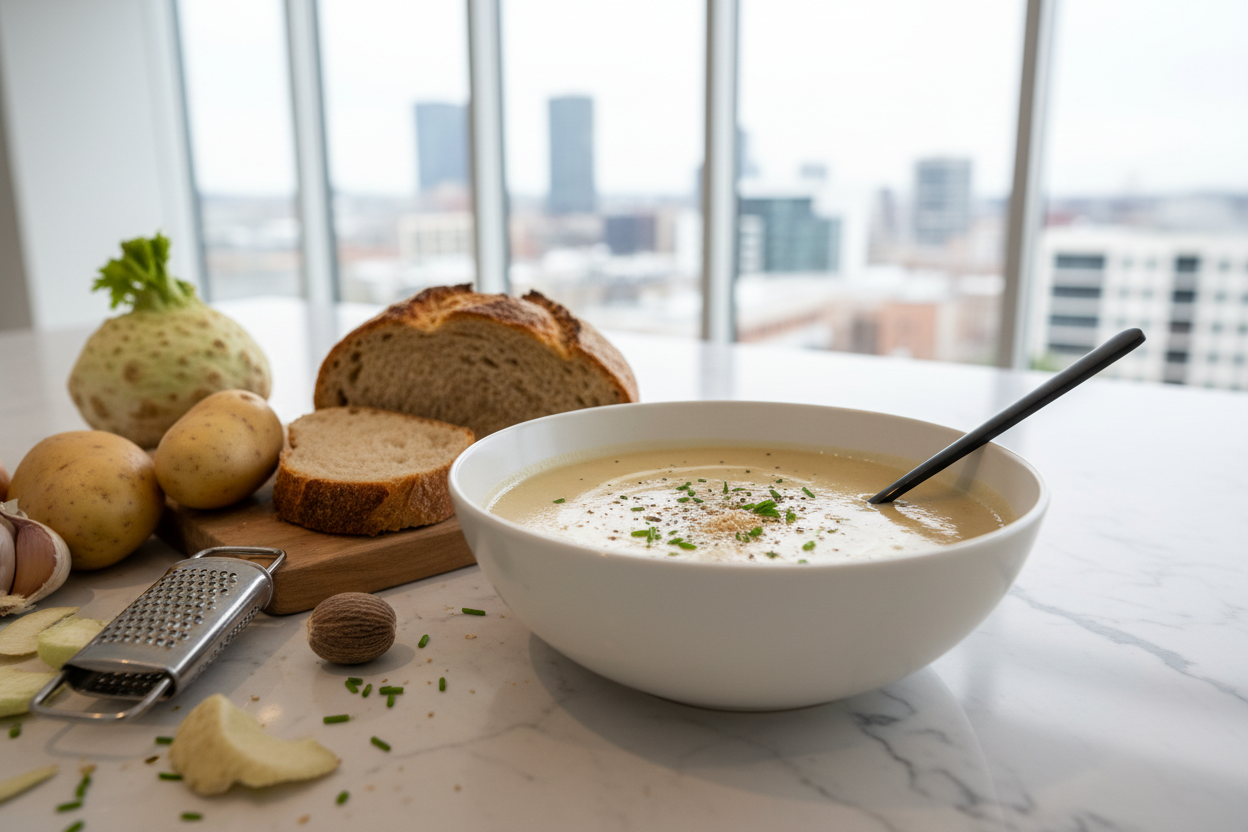- Richtig würzen: Die Muskatnuss ist entscheidend – sie bringt die erdigen Aromen des Selleries erst richtig zur Geltung.