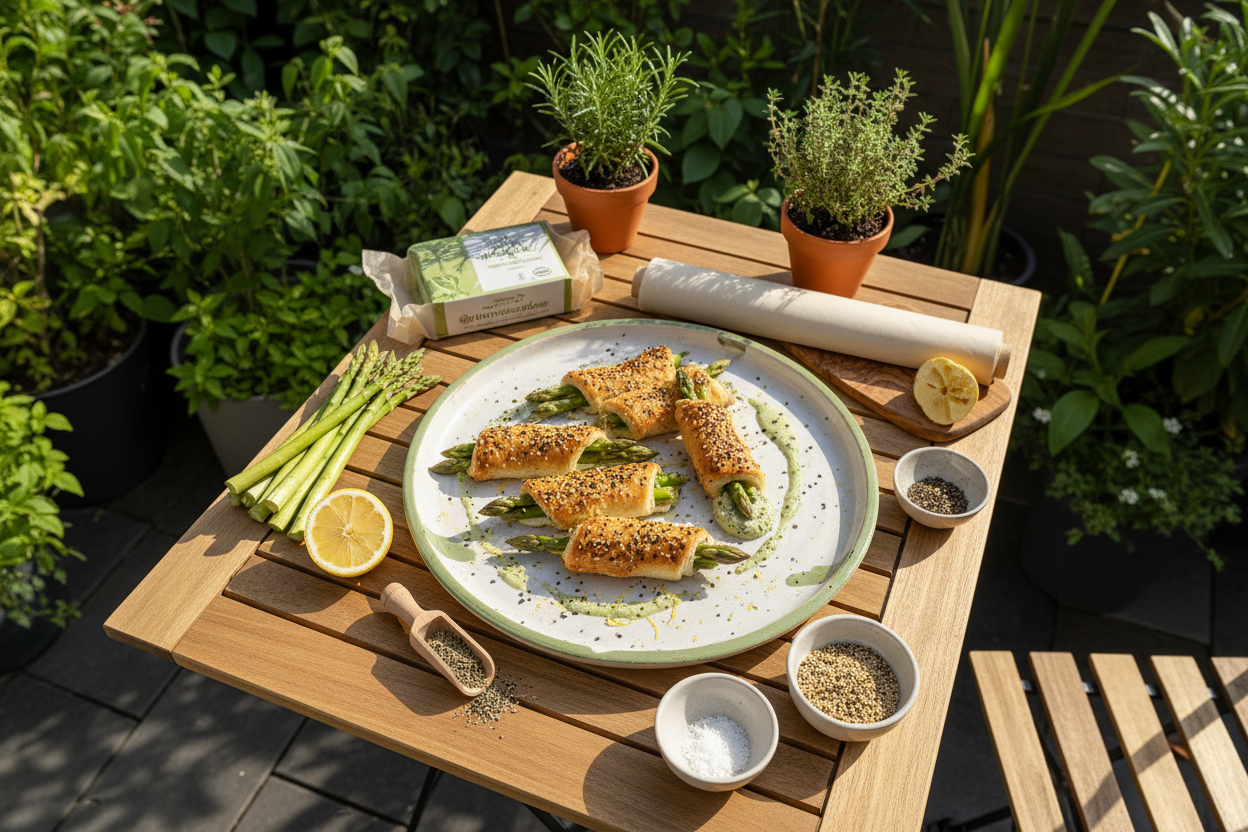Blätterteig-Röllchen sind dabei eine wunderbar vielseitige Antwort: knusprig außen, cremig innen, mit dem frischen Biss des Spargels. Und das Beste: Die meisten fertig ausgerollten Blätterteige aus dem österreichischen Kühlregal sind ohnehin vegan.