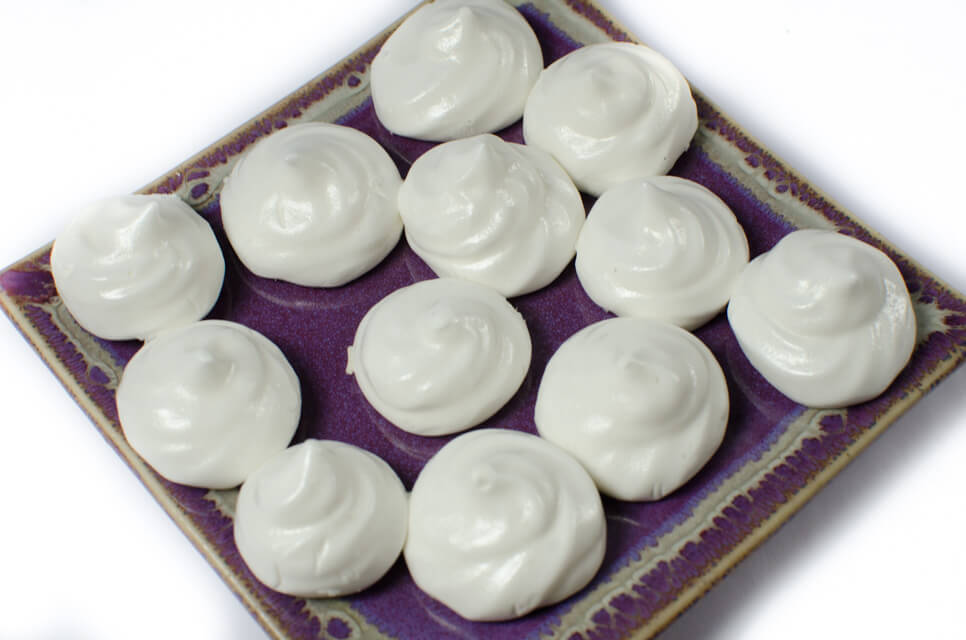 Nach 2min den Zucker einrieseln lassen, Zitronensaft und Weinstein zugeben und für 5min weitermixen bis der Schnee Spitzen schlägt.