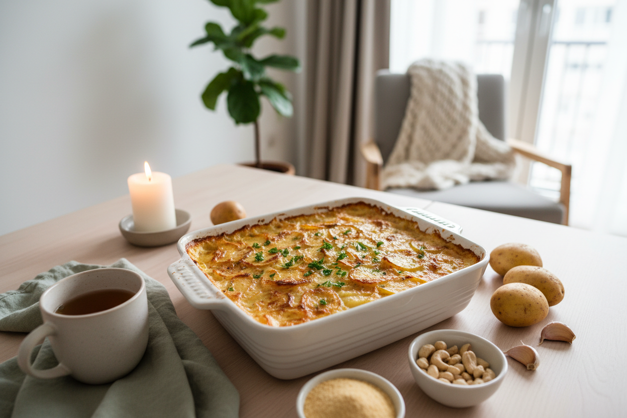Veganer Kartoffelauflauf: Cremig-goldener Klassiker
