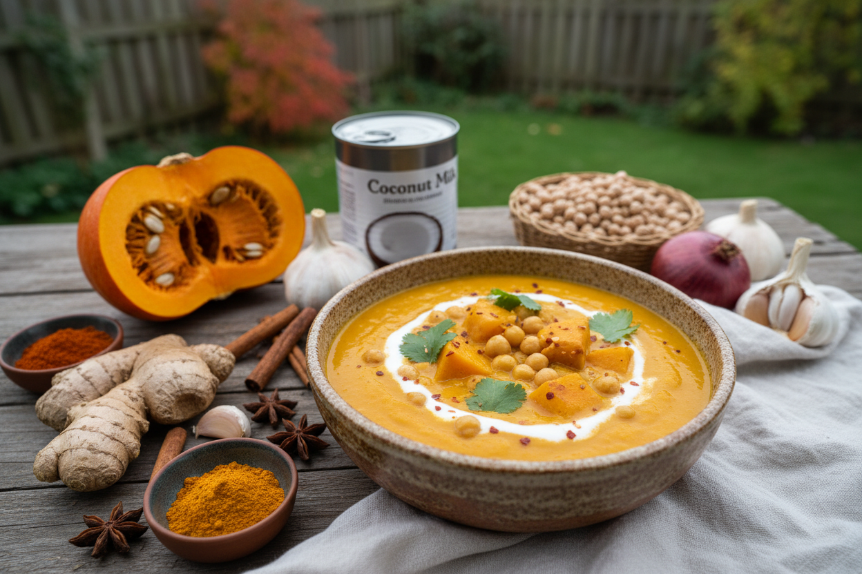 Veganer Kürbis-Eintopf: Wärmend mit Kichererbsen und Kokosmilch