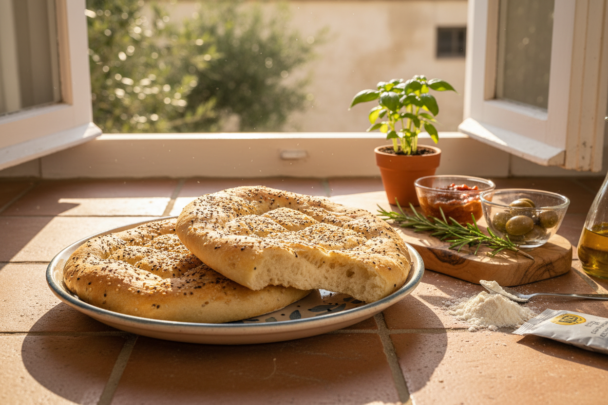 Es gibt wenige Düfte, die so verführerisch sind wie frisch gebackenes Fladenbrot. Dieses vegane Rezept bringt dir das luftig-weiche türkische Fladenbrot (Ramazan Pidesi) direkt in deine Küche – komplett ohne tierische Zutaten, aber mit allem Geschmack.