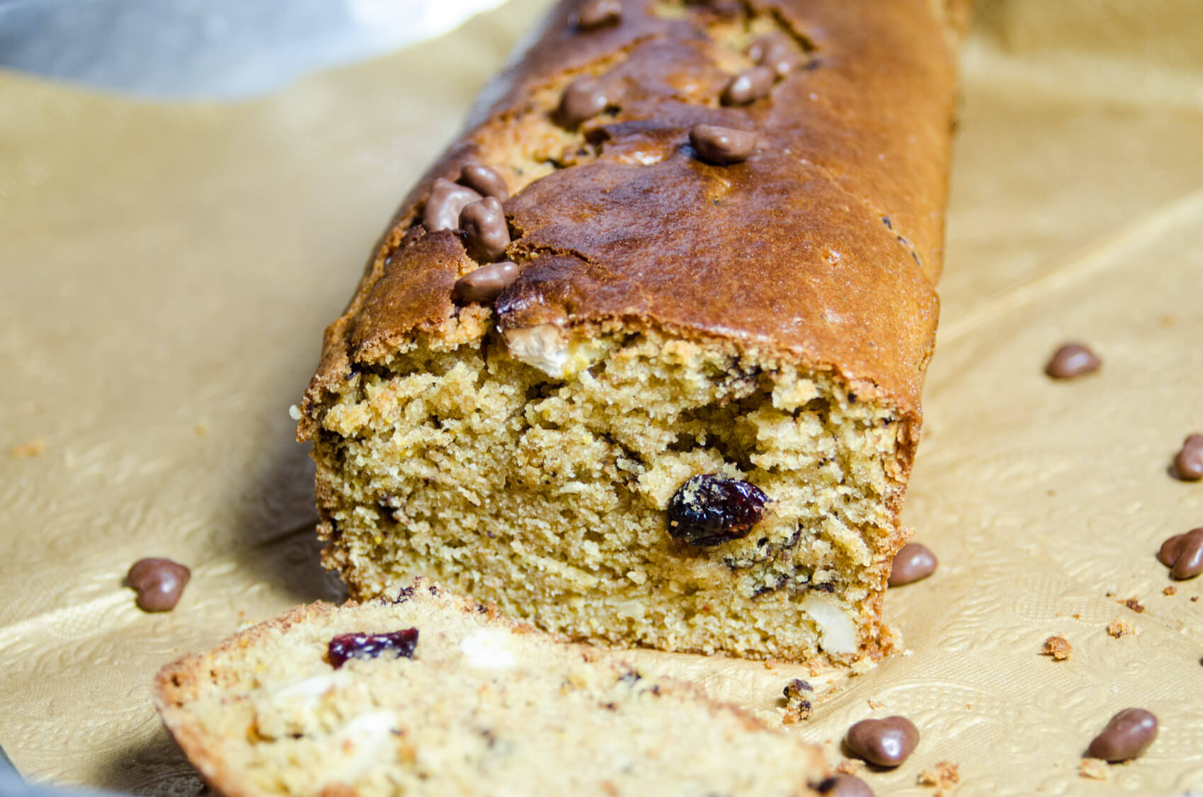 - Am 6. Tag vermische den einen Teil Kuchenansatz mit dem Mehl, Öl, Milch, Nüssen, Rosinen oder Cranberries, Zimt und Schokolade und fülle den Teig in eine mit Backpapier ausgelegte Kastenform.