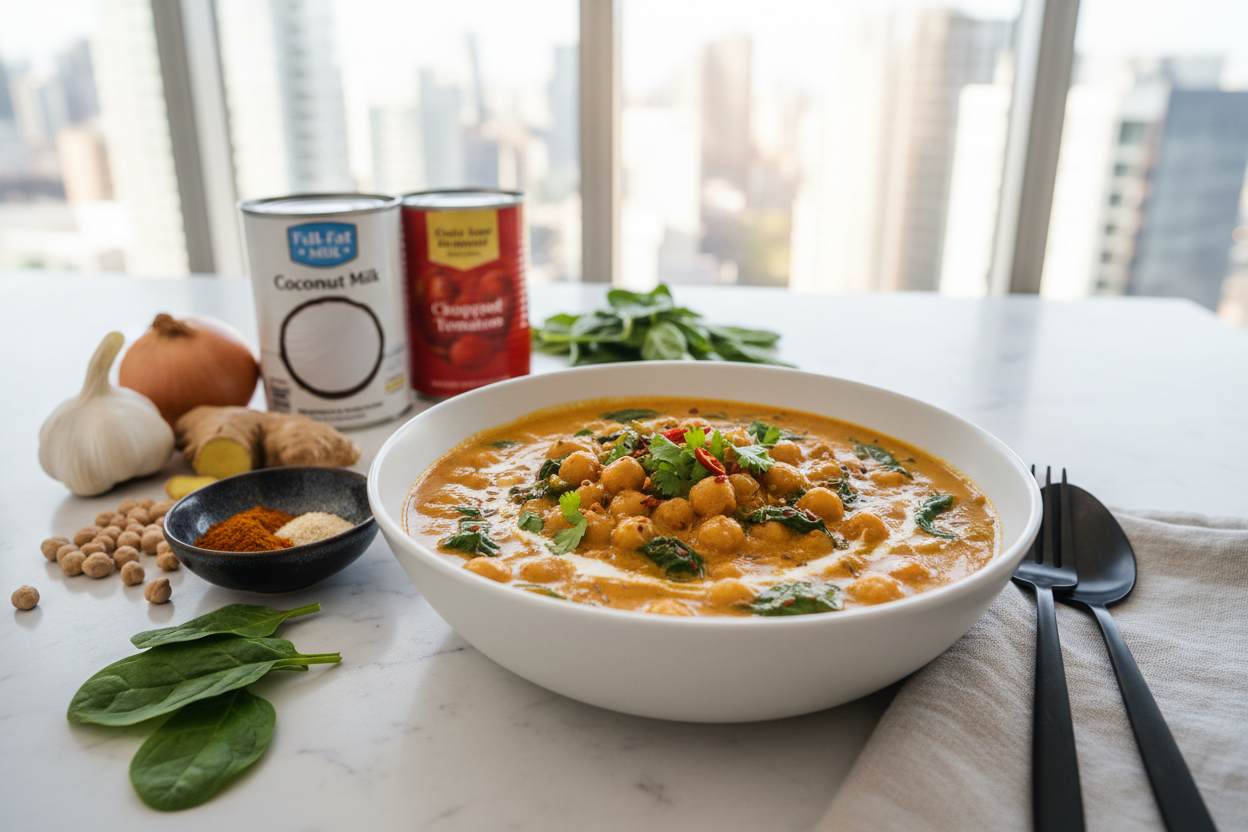 Kichererbsen sind eine hervorragende pflanzliche Proteinquelle – mit rund 9 g Protein pro 100 g gekochten Kichererbsen liefert dieses Curry pro Portion etwa 20 g Protein. Zusammen mit frischem Spinat, der reich an Eisen, Vitamin K und Folsäure ist, ist dieses Gericht nicht nur lecker, sondern auch ausgewogen.