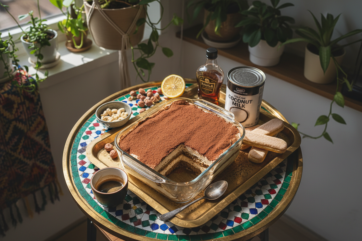 Das klassische Tiramisu - ohne Eier, ohne Sahne, aber mit Nutella Plant Based. Cashews ersetzen den Mascarpone, Kokosmilch gibt die Cremigkeit. Das Ergebnis ist so gut dass Nicht-Veganer zweimal nachfragen.