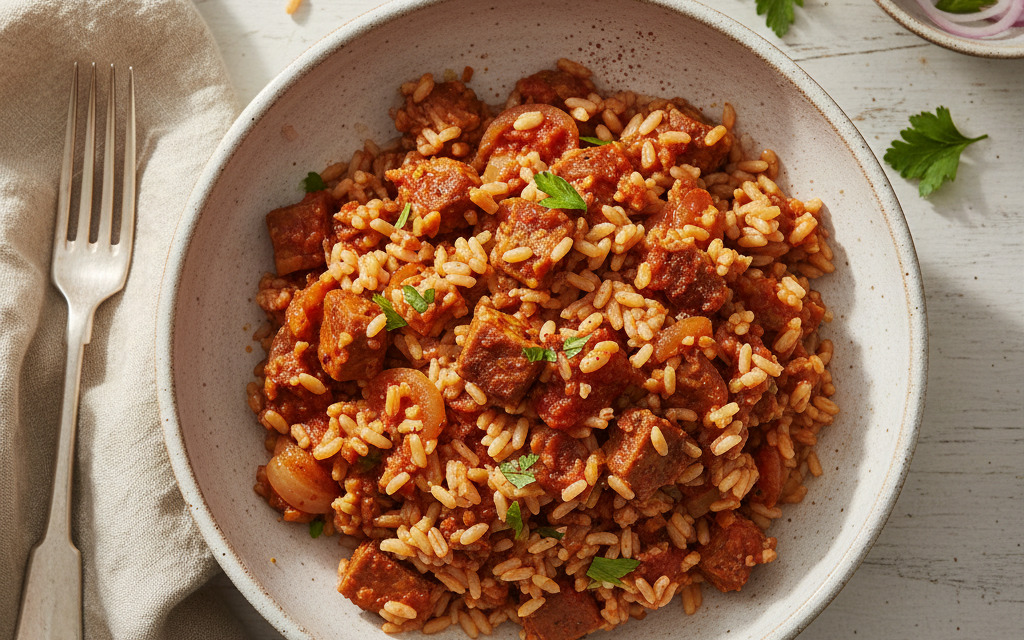 Es gibt mehr Variationen von serbischen Reißfleisch als man sich vorstellen kann. Hier unsere sehr einfache vegane Variante.