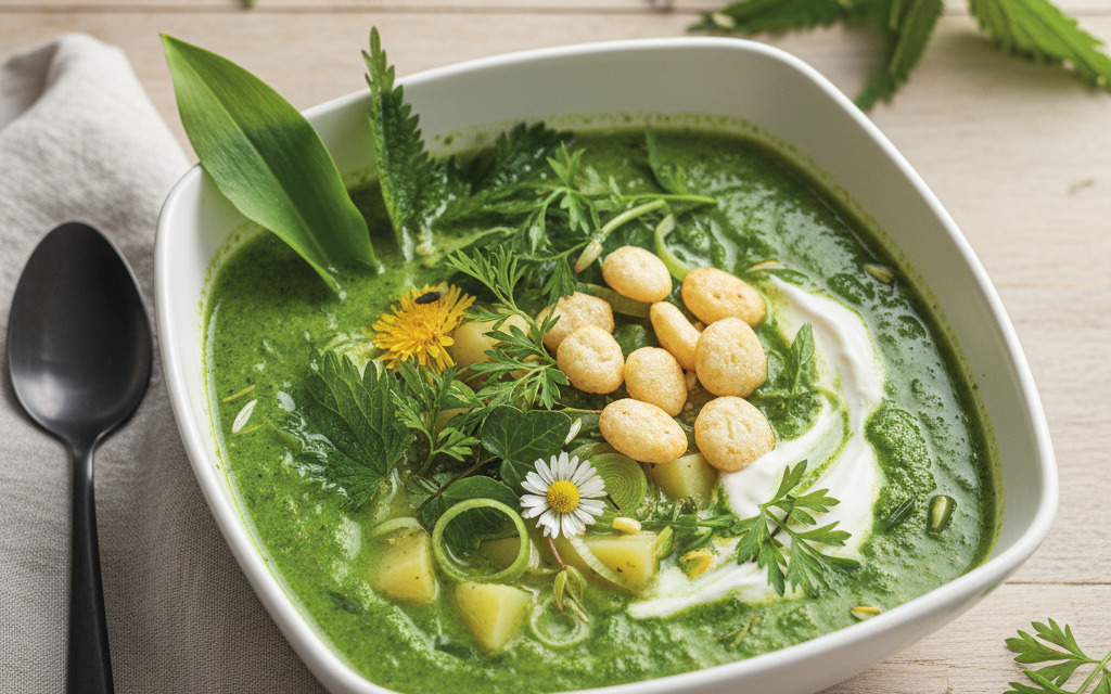 Vegane Grüne Frühlingssuppe mit Wildkräutern